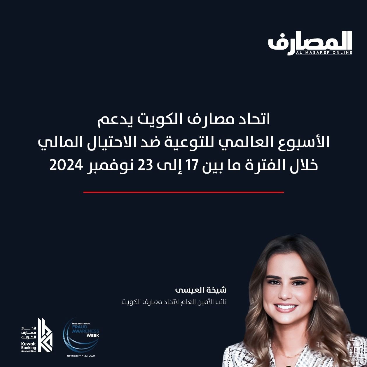 التقارير اتحاد مصارف الكويت يدعم الأسبوع العالمي للتوعية ضد الاحتيال المالي خلال الفترة ما بين ١٧ إلى ٢٣ نوفمبر ٢٠٢٤ November 20, 2024 Posted by Imran Khan 20 Nov تحميل PDF قراءة