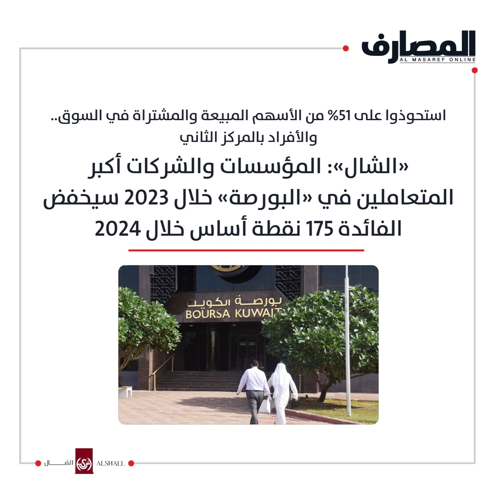 «الشال»: المؤسسات والشركات أكبر المتعاملين في «البورصة» خلال 2023