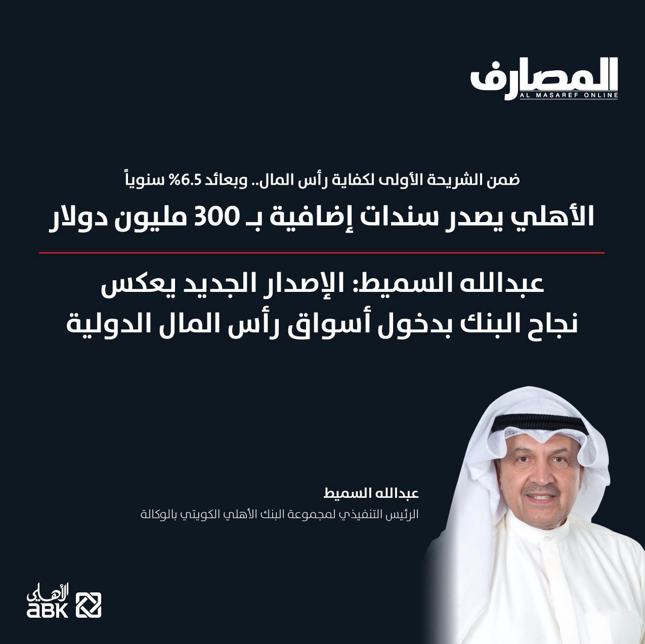 ضمن الشريحة الأولى لكفاية رأس المال.. وبعائد 6.5% سنوياً«الأهلي» يصدر سندات إضافية بـ 300 مليون دولار