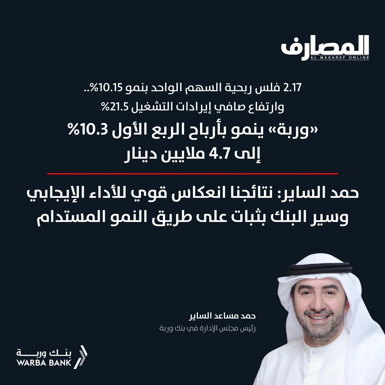 التقارير «وربة» ينمو بأرباح الربع الأول 10.3% إلى 4.7 ملايين دينار April 24, 2024 Posted by Imran Khan 24 Apr تحميل PDF قراءة