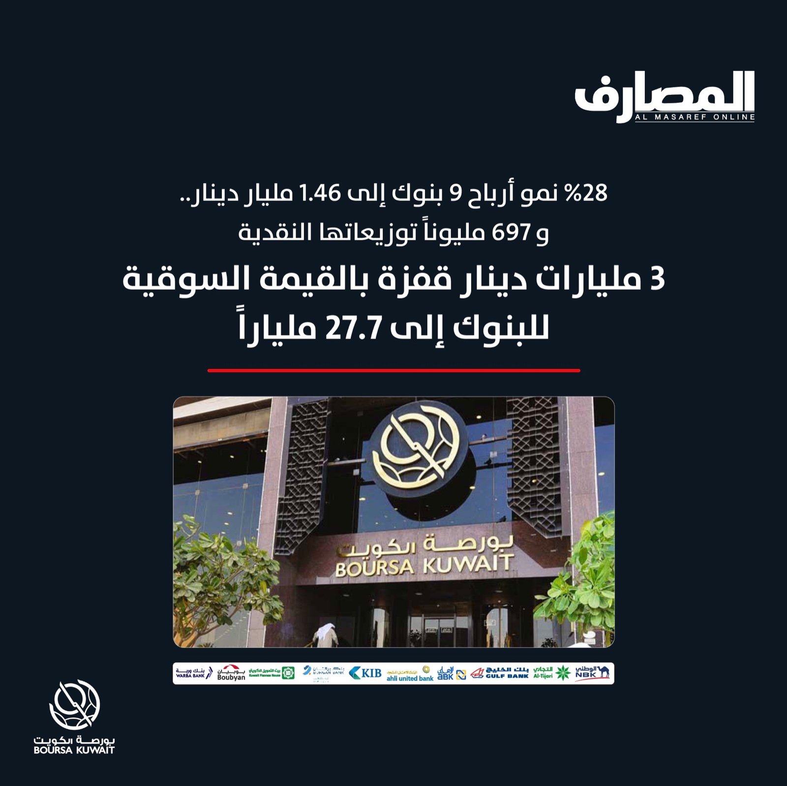 الأخبار 28 % نمو أرباح 9 بنوك إلى 1.46 مليار دينار.. و697 مليوناً توزيعاتها النقدية3 مليارات دينار قفزة بالقيمة السوقية للبنوك إلى 27.7 ملياراً February 27, 2024 Posted by Imran Khan 27 Feb تحميل PDF قراءة
