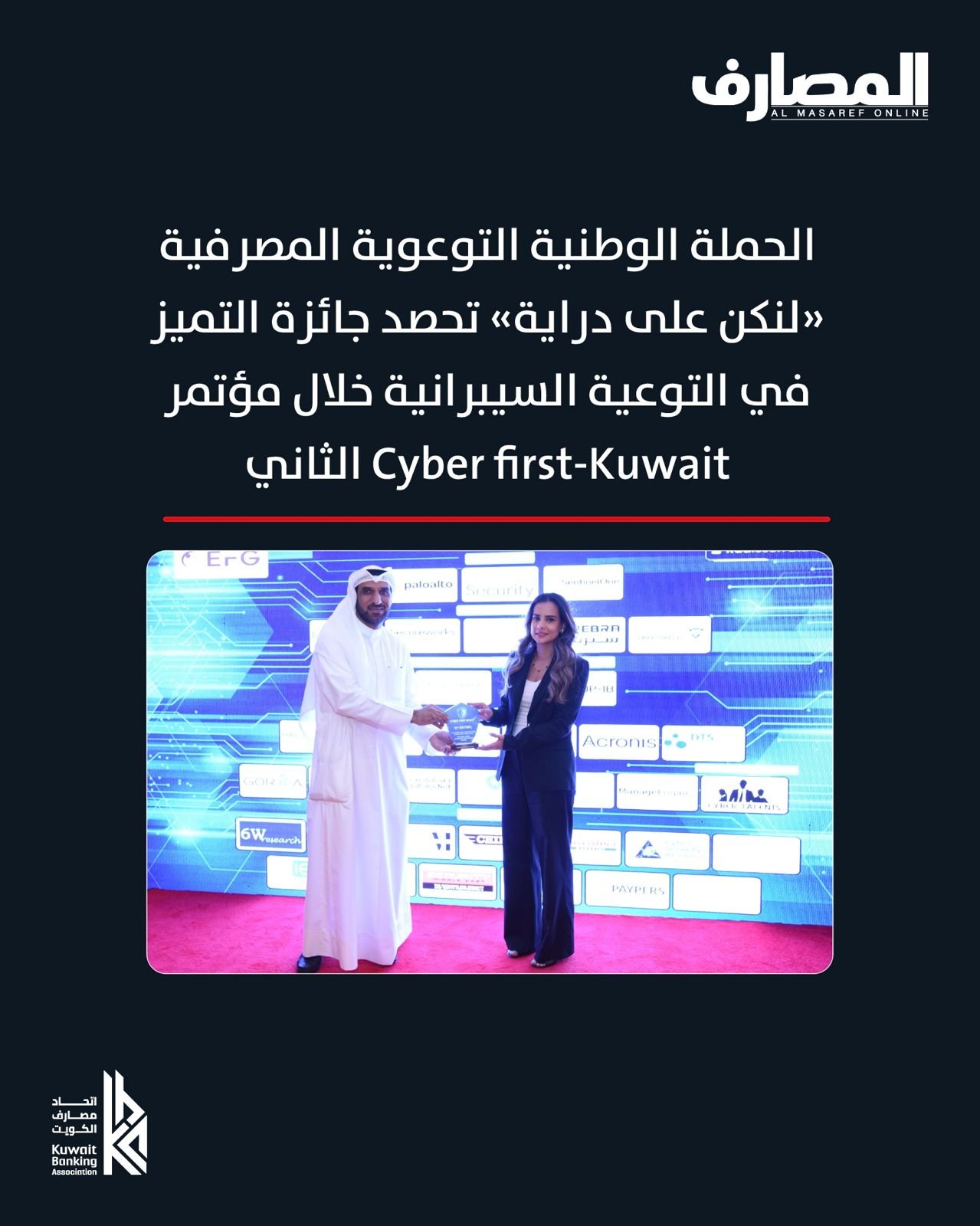27 Apr April 27, 2025 الحملة الوطنية التوعوية المصرفية “لنكن على دراية” تحصد جائزة التميز في التوعية السيبرانية خلال مؤتمر Cyber first-Kuwait الثاني Continue reading قراءة